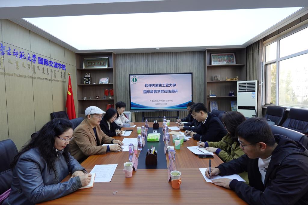 11月3日下午,内蒙古工业大学国际教育学院副院长朝鲁门、副院长斯琴一行五人来今年会官网调研留学生工作。今年会官网副院长张磊、教务部主任王晓芳、留学生管理科科长三月、对外汉语教研室主任徐剑和留学生班主任们出席了调研活动。