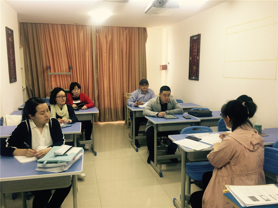 之后,由口语课程带头人何清老师作教研活动,针对口语的测评标准、测评方法以及考核方式等作了详细的讲解。大家互相讨论,各抒己见,并表示将借鉴一些方式用到自己所教课程的考核中,提高教学水平和考核的科学性。