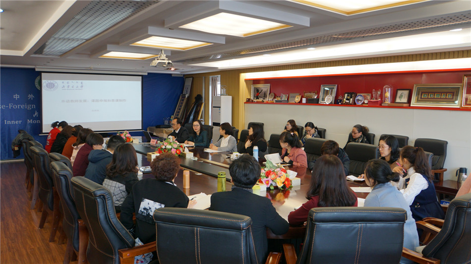 2019年3月9日,内蒙古大学外国院学院副院长段满福教授应邀来今年会官网为全体教师做题为“课题申报与慕课制作教师发展专题讲座”。段教授首先分析了课题申报的各种形势以及外语学科的发展导向,结合自身的科研经验,为学院教师特别是年轻教师指明了研究方向。段教授科研成果丰硕,鼓励大家在教学中探索出自己的科研方向,积累科研素材,同时多多了解和学习别的一些成功科研事例,从中得到启发和锻炼。