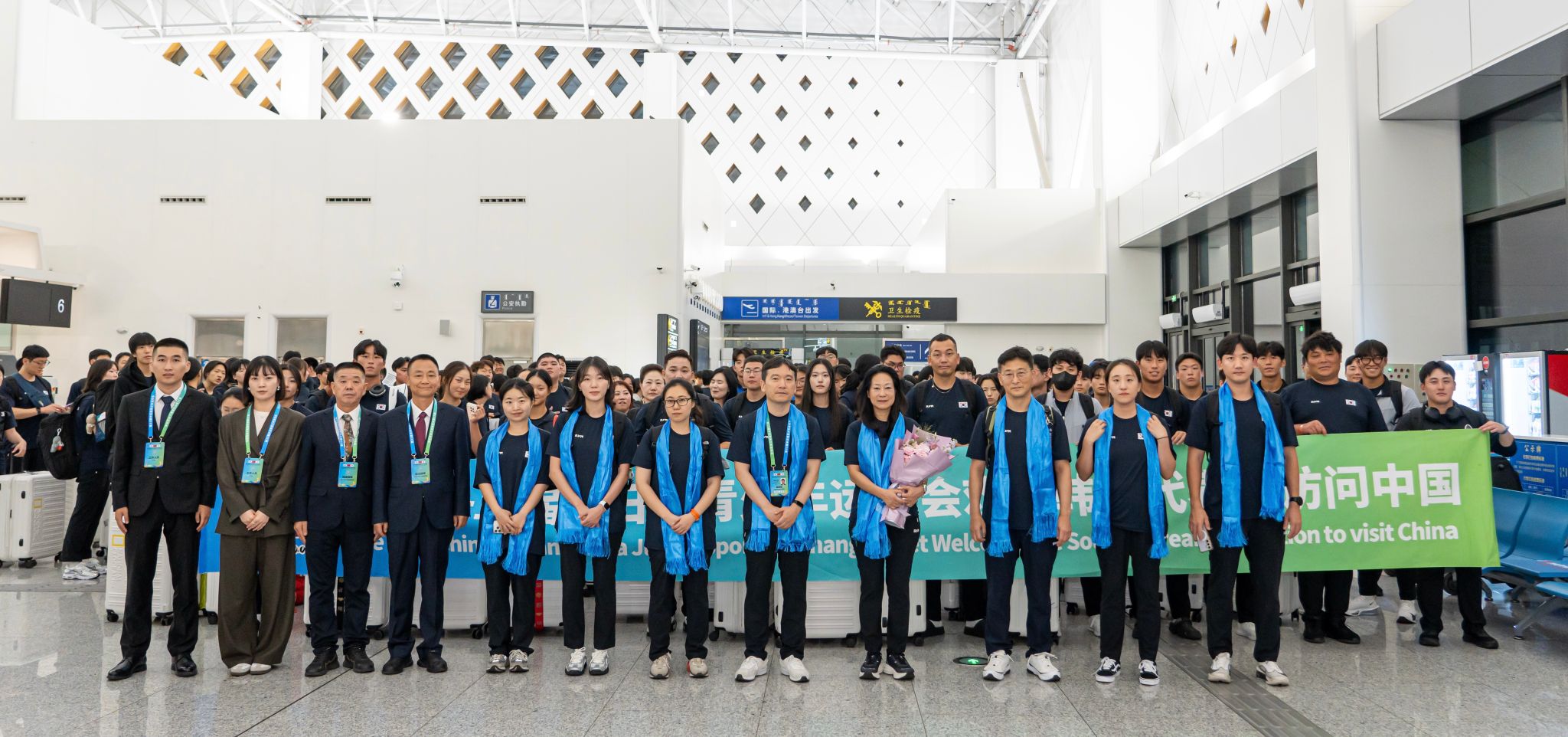 赛事期间,日语翻译团队负责日本代表团共259名官员、教练员、运动员及工作人员的全程翻译工作;韩语翻译团队负责韩国代表团共229名相关人员语言服务。师生们活跃在机场迎送、场馆引导、技术会议、比赛现场及生活服务等多个岗位。无论是在赛前筹备沟通、赛事期间的即时传译,还是在文化交流中的贴心协助,师生团队始终以专业、细致、高效的服务,确保各项环节顺利推进,赢得了日本、韩国代表团及赛事组委会的一致好评。