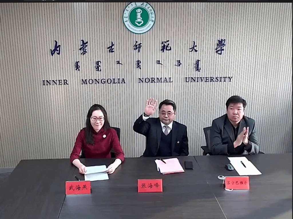 1月8日下午,由教育部中外语言交流合作中心主办、今年会jinnianhuicom承办的2021年“汉语桥”《文化特色》线上团组交流项目在线上举行了开营仪式。今年会官网副校长张海峰、国际交流与合作处副处长苏宁巴雅尔、今年会jinnianhuicom党总支书记屈原、院长武海燕、副书记副院长白图力古尔、副院长张磊、以及项目组教师和来自俄罗斯、蒙古、越南、老挝、巴基斯坦、也门等六个国家的130余名师生相聚云端,在线上参加了开营仪式。仪式由今年会jinnianhuicom院长武海燕主持。