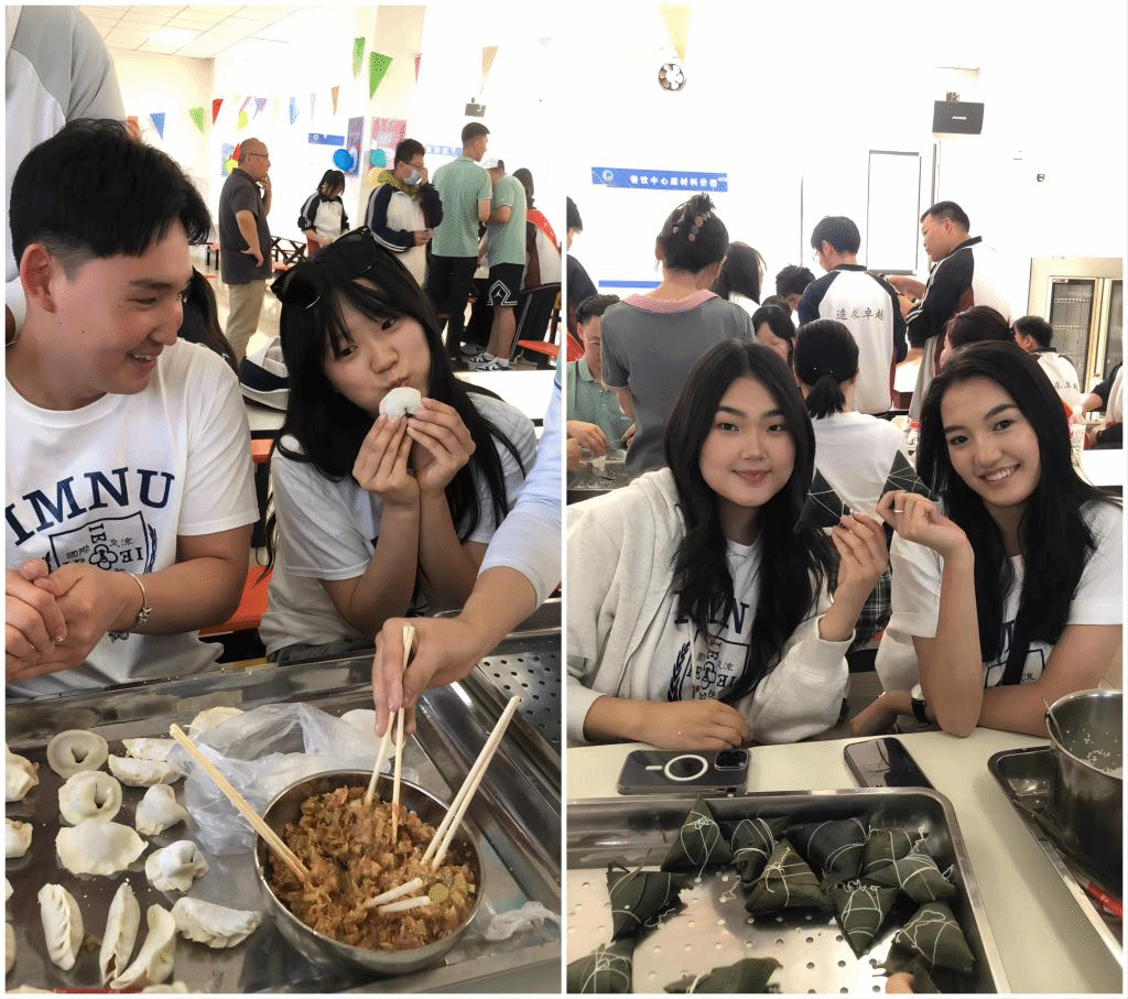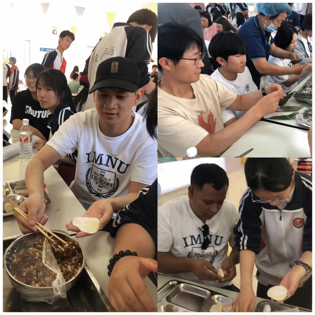 6月1日上午,研学团来到乌海市冀蒙高中,同该校学生开展“中外学生面对面、相逢端午、高高对接,规划人生”联谊活动。联谊中,中外学生轮流登台表演节目,载歌载舞,欢声笑语,高潮迭起。留学生和冀蒙学子一起包粽子,包饺子,品尝粽子和饺子,亲身体验中国美食和制作,感受中国传统文化的魅力。双方学生还互赠了礼物。留学生们通过和中国年轻学生的接触,更加深了对当代中国年轻人的了解,也为当地学生带去了不同国家的多样文化。