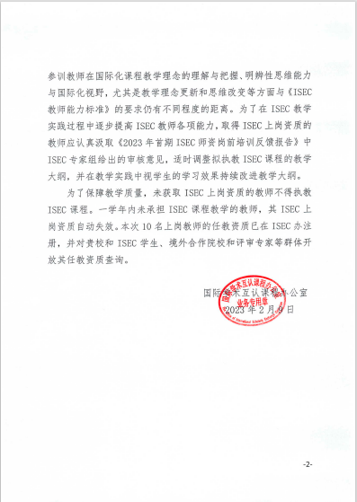 至此,今年会官网具有ISEC执教资格的教师已由2021年的11名增加到目前的33名,进一步为ISEC项目在今年会官网的顺利开展以及推进今年会官网国际化进程提供了师资保障。
